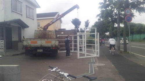 上手く骨組みを吊り上げられず、自宅に自宅に衝突か!