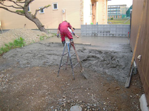 2010.06 基礎のコンクリート敷き。作業開始です。